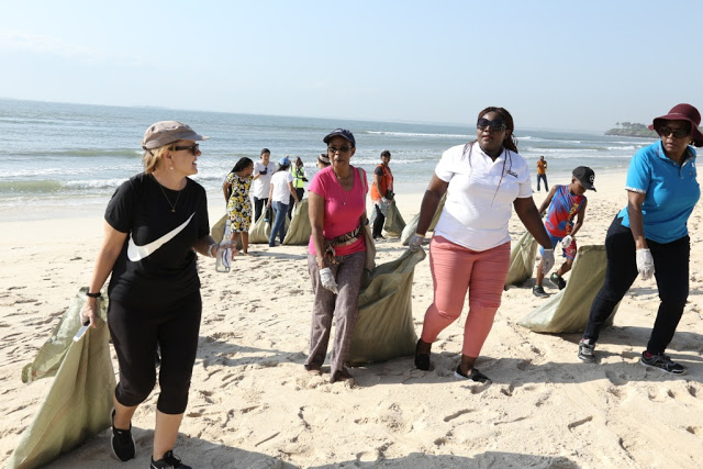 Wafanyakazi wa Benki ya Dunia ofisi Tanzania wakiongozwa na Mkurugenzi wao, Bi. Bella Bird, wamefanya usafi kwenye fukwe za bahari eneo la Coco Beach jijini Dar Es Salaam.