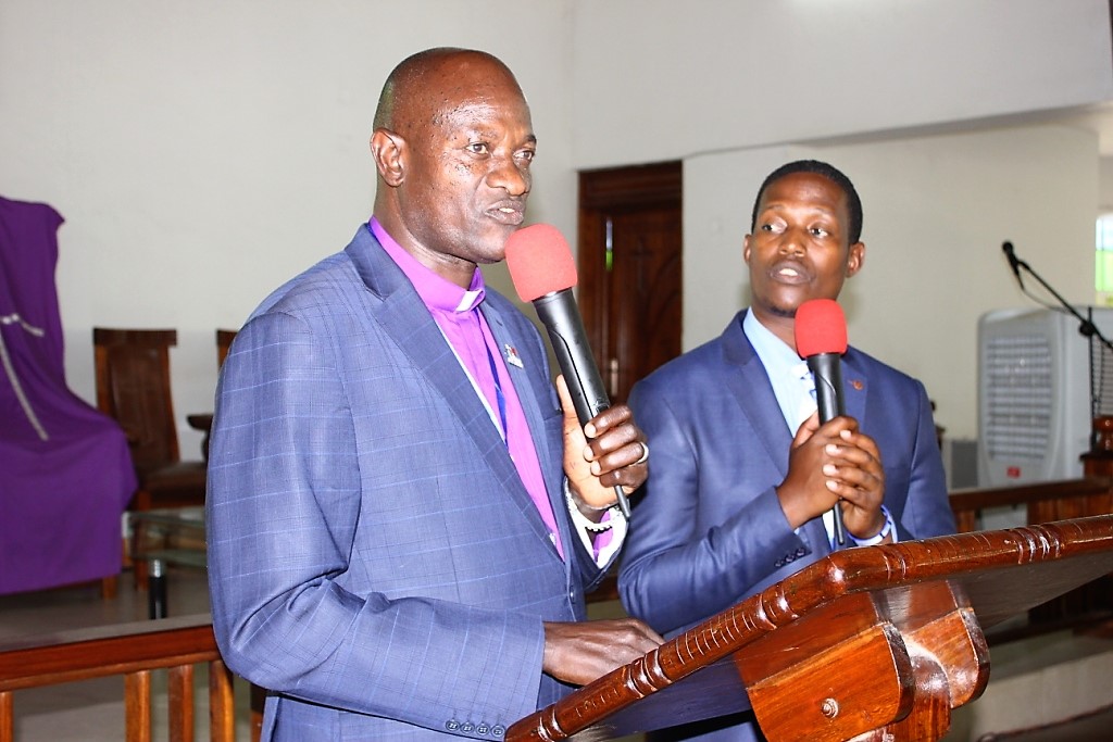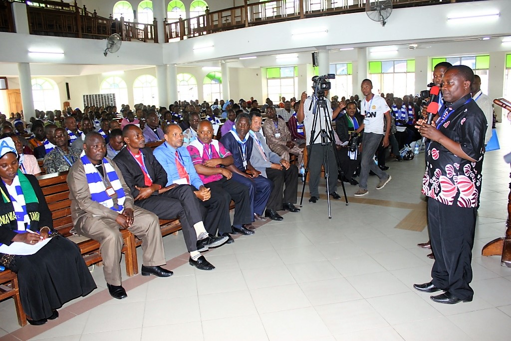 Makamu Mwenyekiti wa Umoja wa Makanisa jijini Mwanza, Askofu Amos Hulilo (kulia) akizungumza kwenye kongamano hilo kwa niaba ya Mwenyekiti.