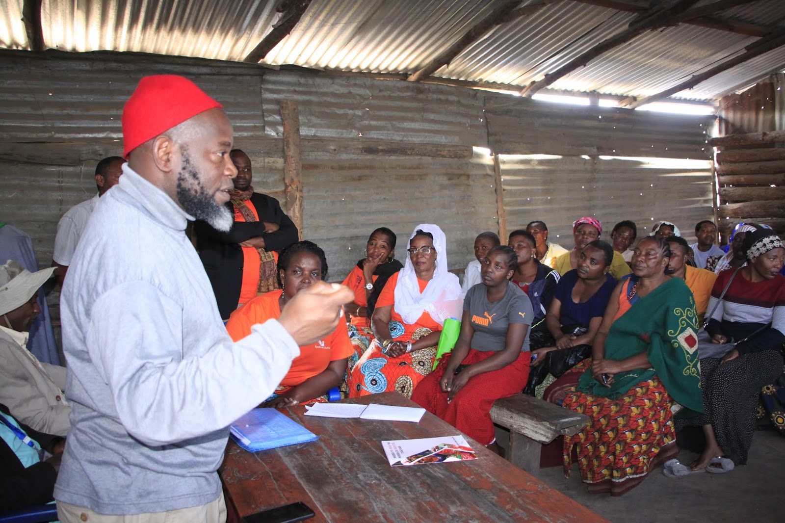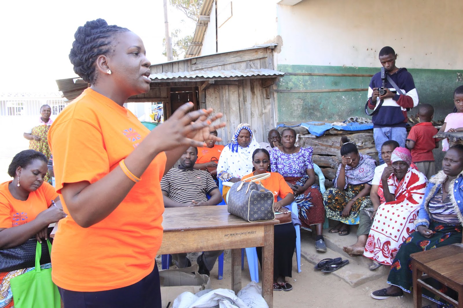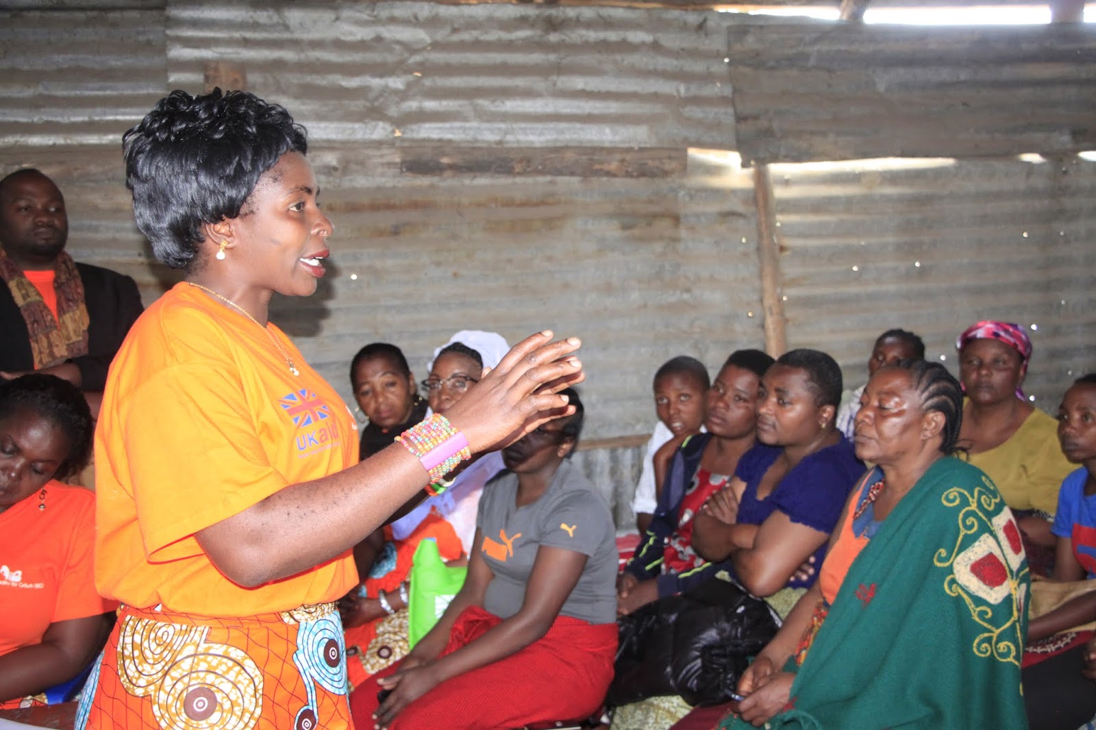 Ofisa Utawala wa EfG, Eva Buhembo, akizungumza na wanawake wa Soko la Kihesa.
