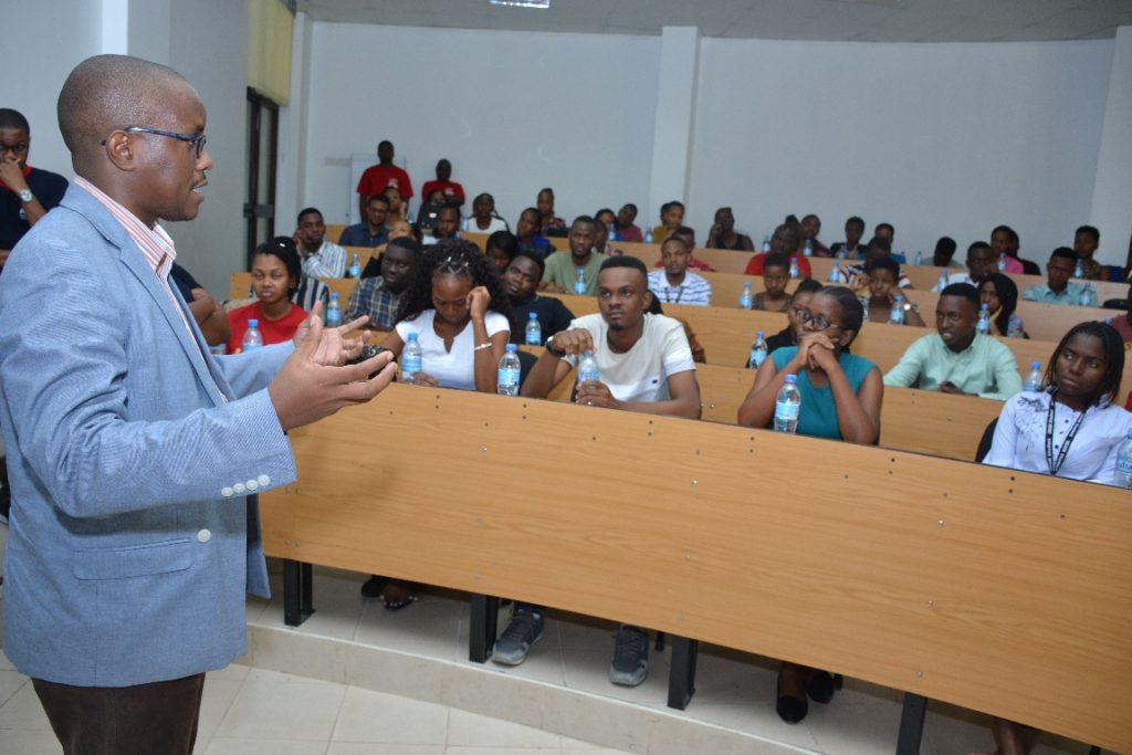 Mkuu wa Uendeshaji Mizania wa Benki ya NBC Henry Lesika, akizungumza na baadhi ya wanafunzi wa Shule ya Biashara ya Chuo Kikuu cha Dar es Salaam (UDBS), wakati wa semina kuhusu ujuzi katika sekta ya benki pamoja na masoko ya fedha na mitaji hapa nchini.Semina hiyo ilifanyika chuoni hapo jijini Dar es Salaam juzi.