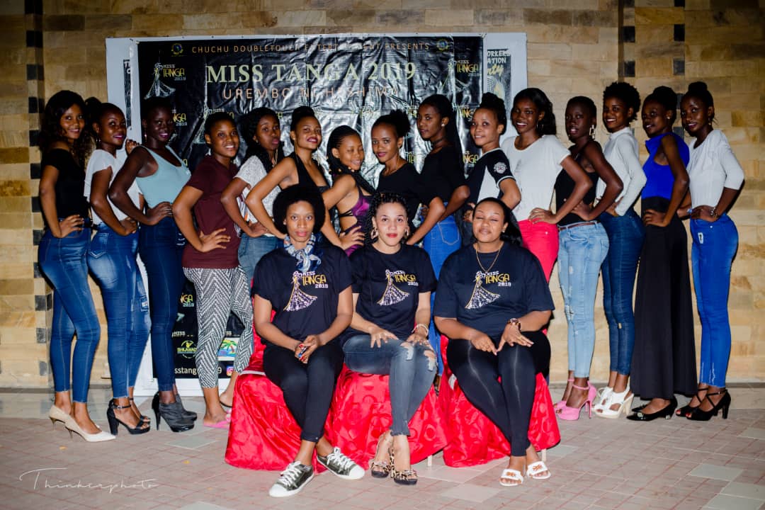 WAREMBO wanaoshiriki Shindano ya Miss Tanga 2019 wakiwa kwenye picha ya pamoja mara baada ya mazoezi yao yanayofanyika kwenye Ukumbi wa Hoteli ya Nyumbani waliokaa mbele katikati ni Muandaaji wa Mashindano hayo Chuchu Hans