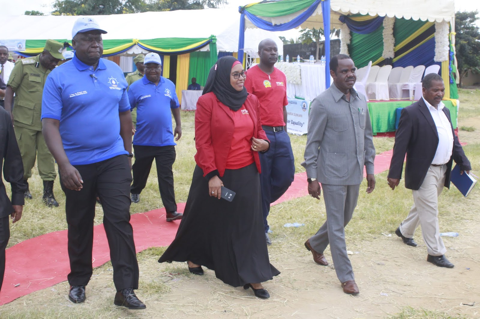 Mkuu wa Mkoa wa Tanga Martine Shigella kulia akiwa na Katibu Tawala wa Mkoa huo Mhandisi Zena Saidi na Mkuu wa wilaya ya Tanga kulia Thobias Mwilapwa mara baada ya kufanya ufunguzi huo
