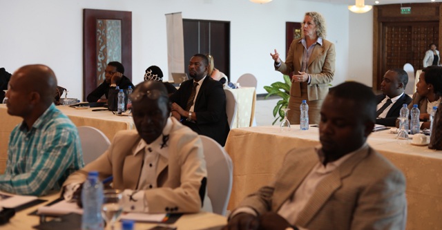 Resident Legal Advisor Patricia Kessler discusses trial advocacy with public prosecutors, law professors, and investigators during an intensive training program yesterday. The training was held in collaboration with the United States Embassy through the United States Department of Justice. (U.S. embassy photo)