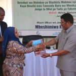 Afisa Tarafa Mihambwe Emmanuel Shilatu amembana Diwani wa Chama Cha Wananchi (CUF) Kata ya Mkoreha Mhe. Ahmad Ally Ndende juu ya utolewaji wa mikopo ya Halmashauri kwa Vijana, Wanawake na Walemavu ili kuwakwamua Wananchi kiuchumi.