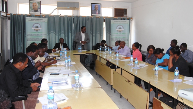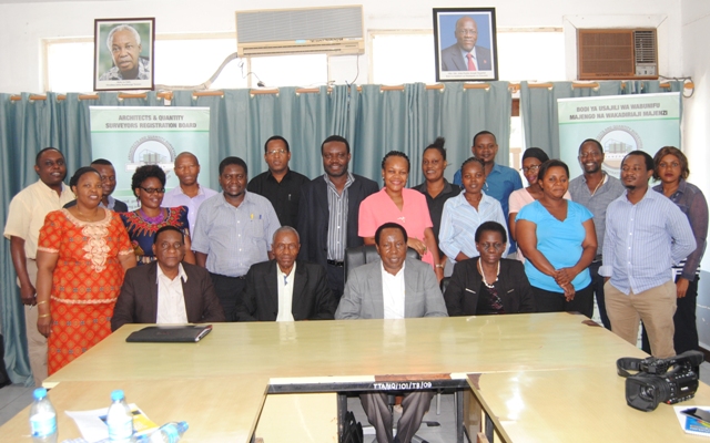 Watumishi wa bodi hiyo wakiwa katika mafunzo ya kuwajengea uwezo waandishishi wa habari yaliyoandaliwa na bodi hiyo kuhusu kuacha kuichanganya taaluma yao na ile ya wahandisi badala yake iuelimishe umma tofauti iliyopo baina ya taaluma hizo mbili na umuhimu wa kuwatumia wataalamu hao wanapofanya ujenzi.