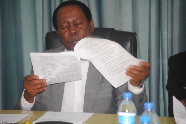 Mwenyekiti wa Bodi ya Usajili wa Wabunifu Majengo na Wakadiriaji Majenzi (AQRB) Arch . Dkt Ludigija Bulamile akipitia taarifa mbali mbali za bodi hiyo.