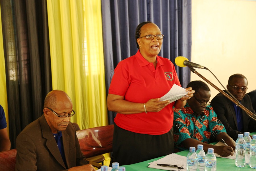 Katibu Mkuu Ofisi ya Waziri Mkuu (Sera Uratibu na Uwekezaji ) Bi Dorothy Mwaluko akifungua mkutano wa kwanza wa chama cha Walimu wa Hisabati na Masomo ya Sayansi June 29, 2019 Jijini Dodoma.