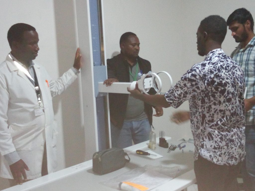 Mafundi wakiendelea kufunga mashine mpya ya kisasa ya hospitali ya rufaa ya Haydom Mkoani Manyara, wakiendelea kushoto ni Mkurugenzi wa hospitaki hiyo Dkt Emmanuel Nuwass.