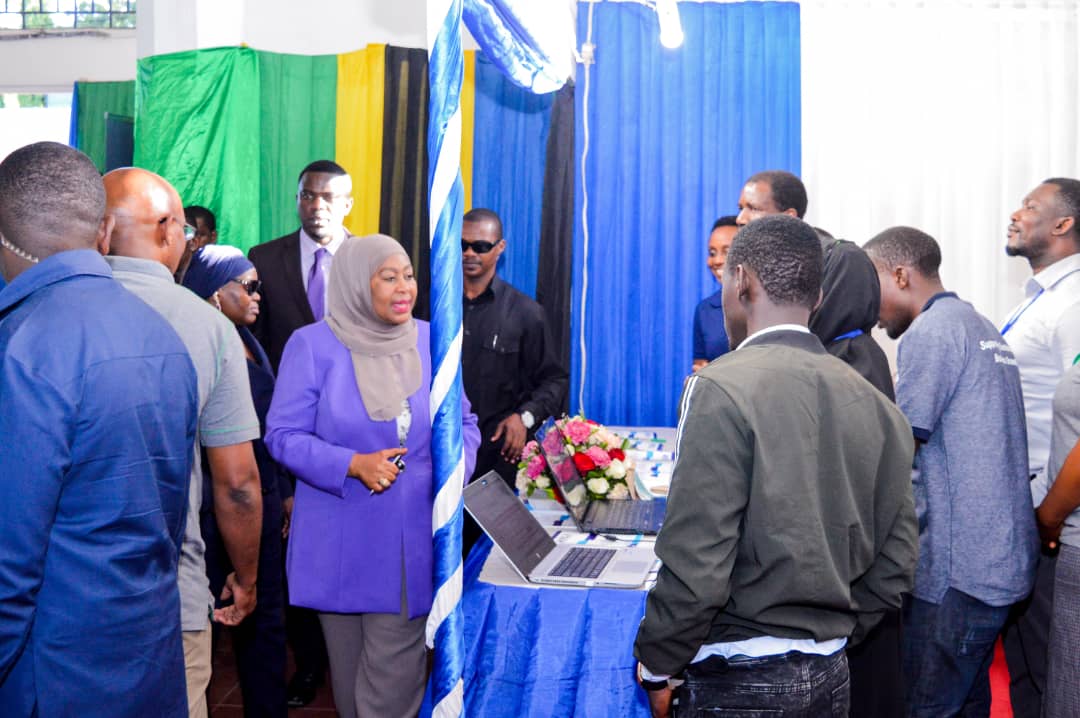 Makamu wa Rais wa Jamhuri ya Muungano wa Tanzania Mh. Samia Suluhu,akipata maelezo kwenye banda la Usajiri wa Leseni na Biashara (BRELA) alipolitembelea banda hilo na kujionea huduma inayotolewa katika sherehe za ufunguzi wa Maonesho ya 43 ya biashara ya Kimataifa yaliyofanyika katika viwanja vya Mwalimu Nyerere Jijini Dar es Salaam.
