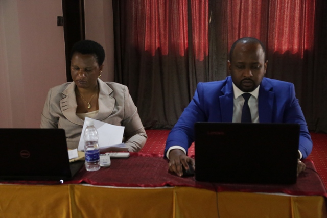 Wilson Muyenzi Mratibu wa mradi wa 50 Milioni African Women Speak Networking kulia akiwa mmoja wa maofisa wa (EAC) katika semina hiyo.