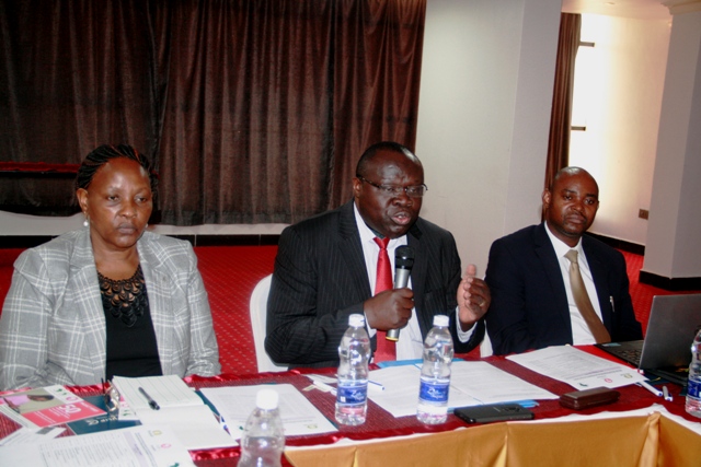 Naibu Katibu Mkuu wa Jumuiya ya Afrika Mashariki Mh. Christopher Bazivamo akifugua semina ya waandishi wa habari iliyofanyika mwanzoni mwa wiki hii kwenye hoteli ya Golden Tulip Posta jijini Dar es salaam kuhusu mradi wa (50 Milioni African Women Speak Networking)katikati ni ni Mary Makoffu Mkurugenzi wa Idara ya Jamii (EAC) na wa pili kutoka kushoto ni Ofisa Maendeleo Mwandamizi wa Wizara hiyo kutoka Idara ya Jinsia Mapunda John.