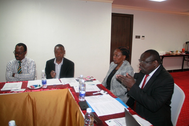 Naibu Ktibu Mkuu wa Jumuiya ya Afrika Mashariki Dk. Christopher Bazivamo akifugua semina ya waandishi wa habari iliyofanyika mwanzoni mwa wiki hii kwenye hoteli ya Golden Tulip Posta jijini Dar es salaam kuhusu mradi wa 50 Milioni African Women Spea, Kulia ni Kulia ni JUvenari Ndimurirwo Mkurugenzi wa Fedha (EAC) kushoto ni Mary Makoffu Mkurugenzi wa Idara ya Jamii (EAC)