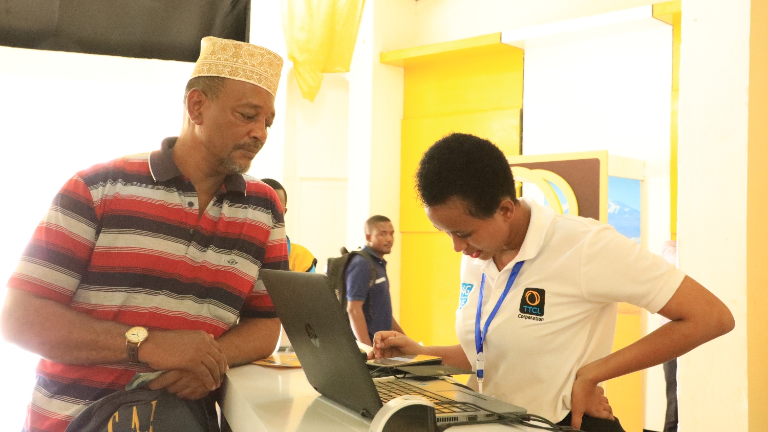 Mtoa huduma kwa wateja wa Shirika la Mawasiliano Nchini (TTCL) akiwahudumia