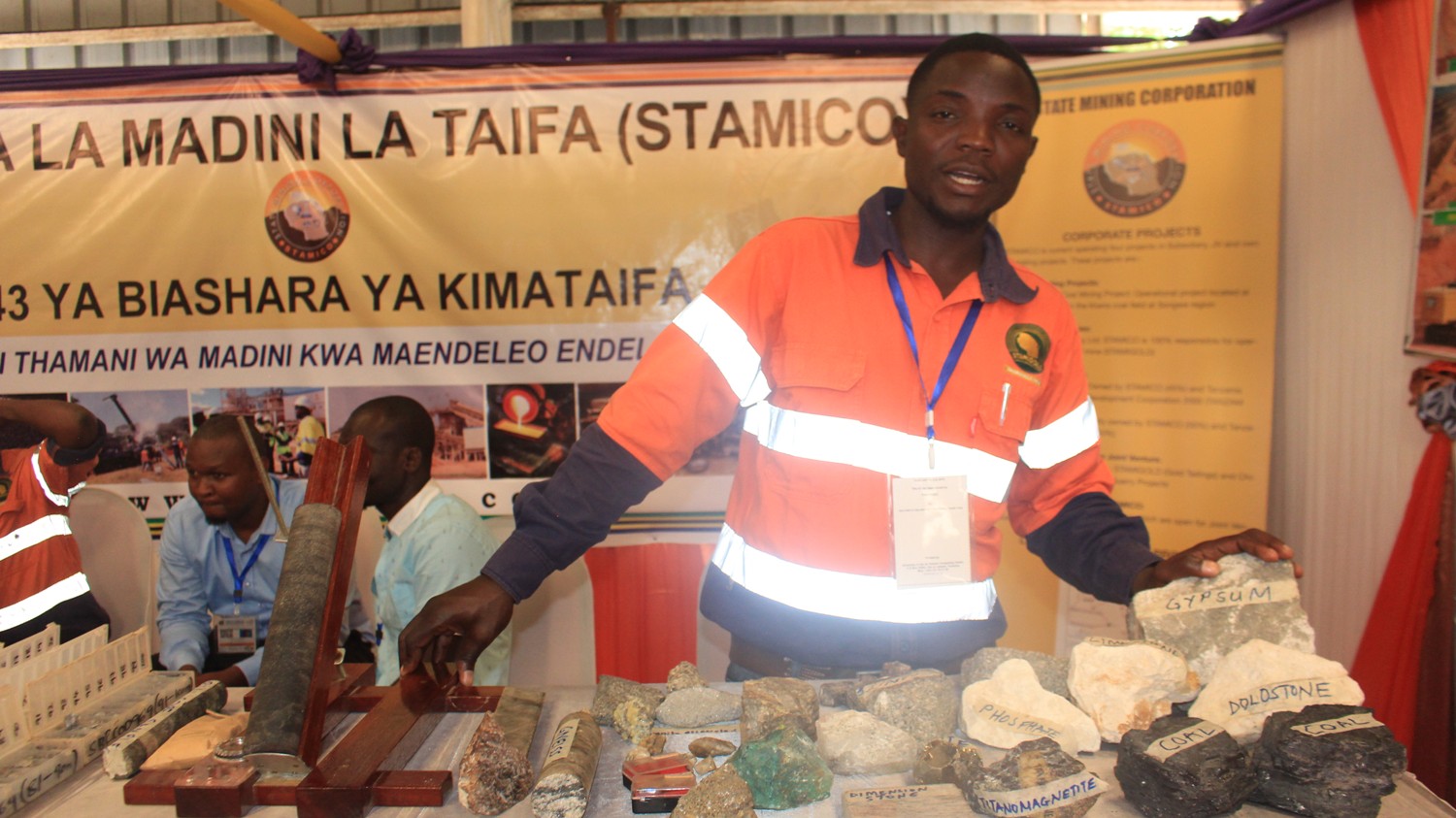 Andaalwisye akitoa ufafanuzi kuhusu madini mbalimbali yanayochimbwa katika migodi mbalimbali nchini wakati wa Maonesho ya Biashara ya Kimataifa Dar es Salaam yanayoendelea katika viwanja vya Julius Nyerere Jijini Dar es Salaam.