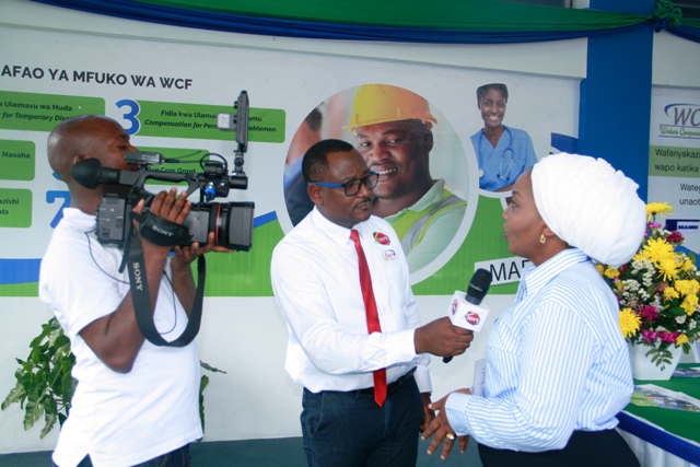 Mkuu wa Kitengo cha Mawasiliano na Uhusiano WCF, Bi. Laura Kunenge akifanya maojiano na mwandishi Albert Kilala kutoka Kituo chaluninga cha Chanel Ten.