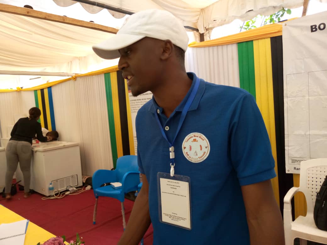 Ofisa Usajili wa Bodi ya Nyama Bw. Geofrey Sosthens akitoa maelezo kwa wananchi waliotembelea katika banda hilo wakati wa maonesho ya Sabasaba ya yanayoendelea barabara ya Kirwa jijini Dar es Salaam.