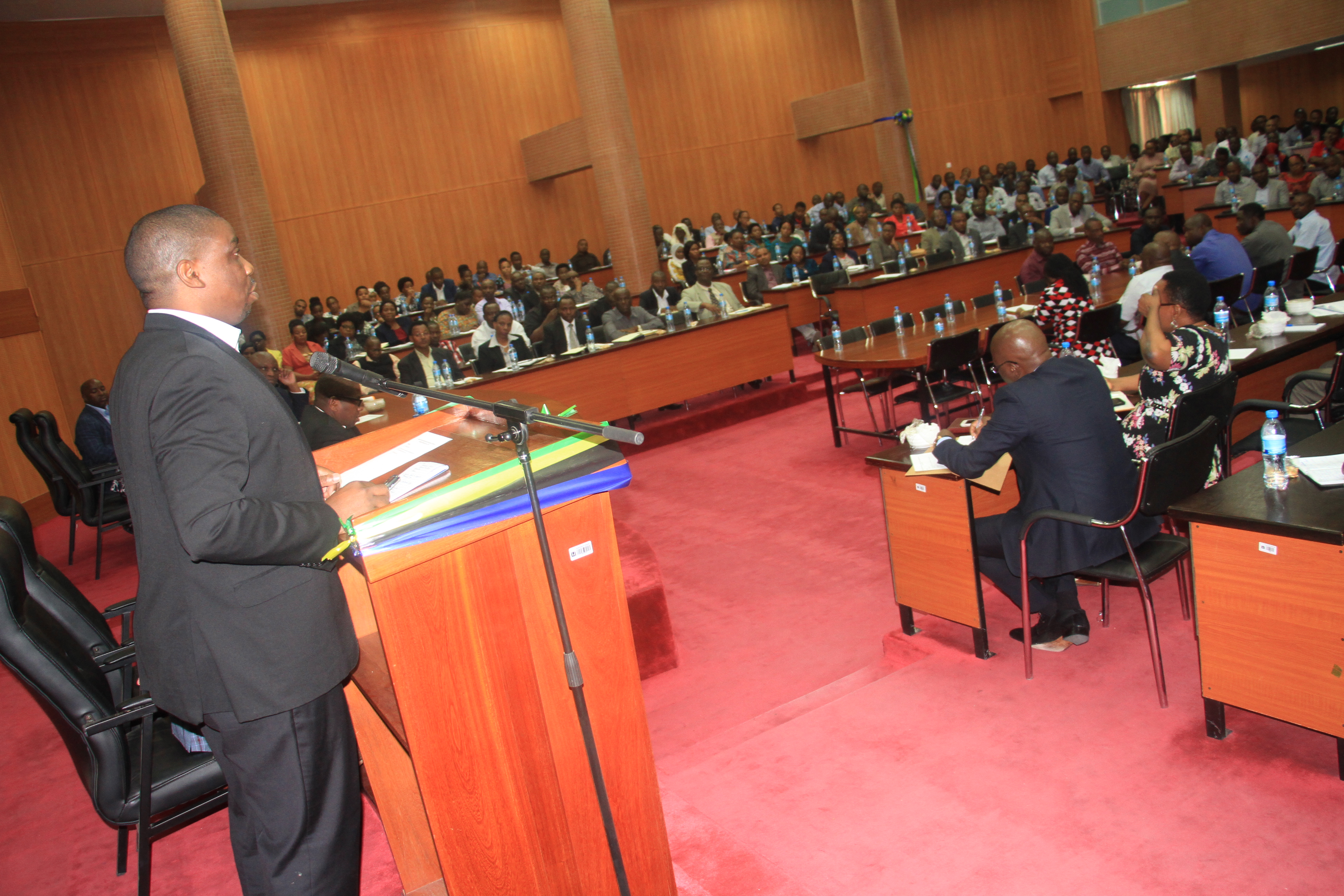 Naibu Katibu Mkuu wa Wizara ya Fedha na Mipango Bw. Adolf Ndunguru akifafanua jambo wakati wa kikao Kati ya Viongozi na Watumishi wa Wizara hiyo kilichofanyika Jijini Dodoma, ambapo Watumishi waliaswa kufanya kazi kwa bidii na weledi.