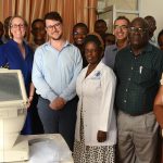 Mtume Venon Fernandes wa Kanisa la Agape akiwa pamoja na wananchi wa Rwamishenye wakifurahia wakati wakimsikiliza Rais wa Jamhuri ya Muungano wa Tanzania Mheshimiwa Dkt. John Pombe Magufuli wakati aliposimama katika eneo hilo na kuwasalimu.
