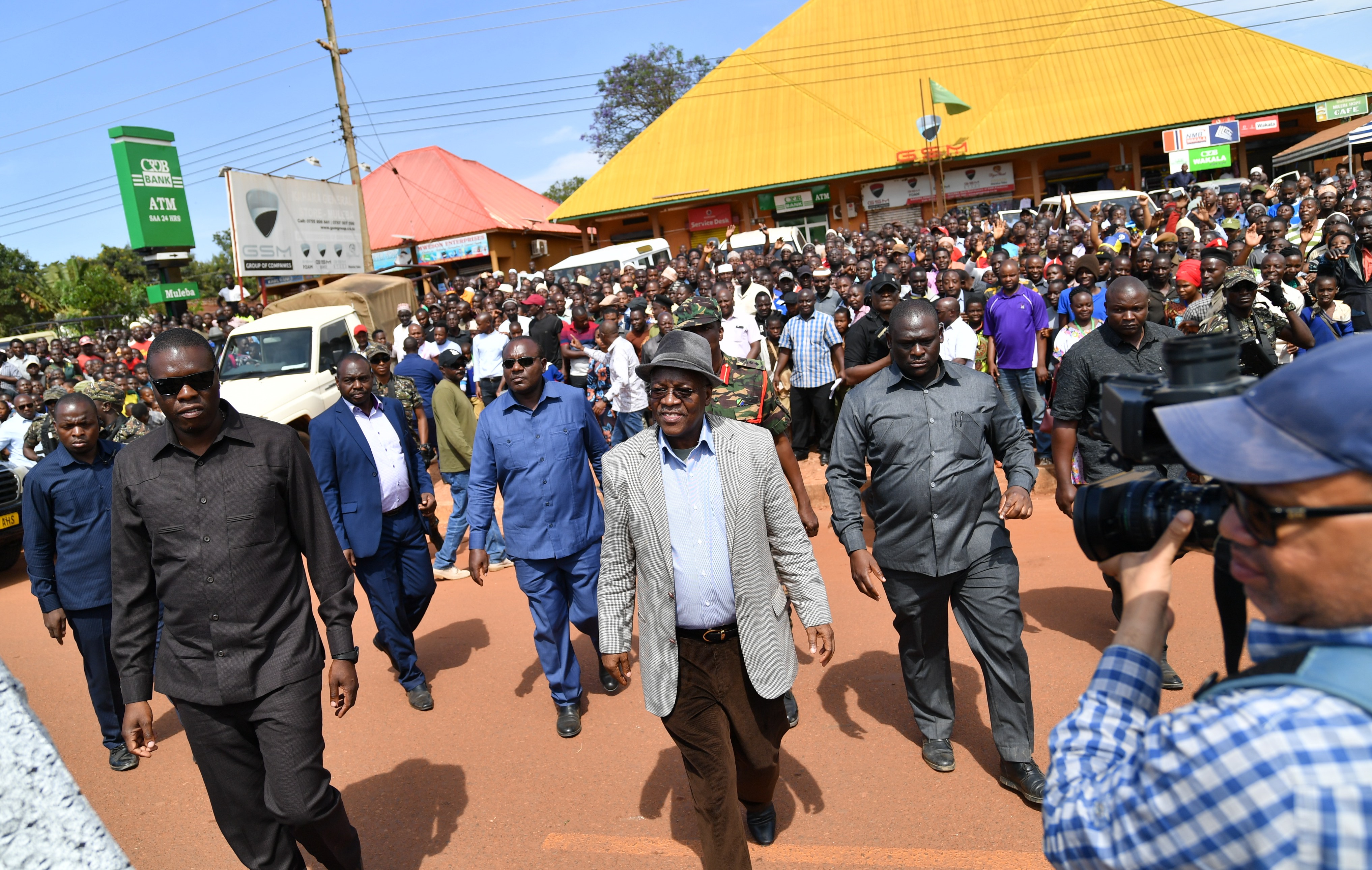 Rais wa Jamhuri ya Muungano wa Tanzania Mheshimiwa Dkt. John Pombe Magufuli akiondoka katika eneo la Muleba mjini mara baada ya kuzungumza na wananchi wa eneo hilo.