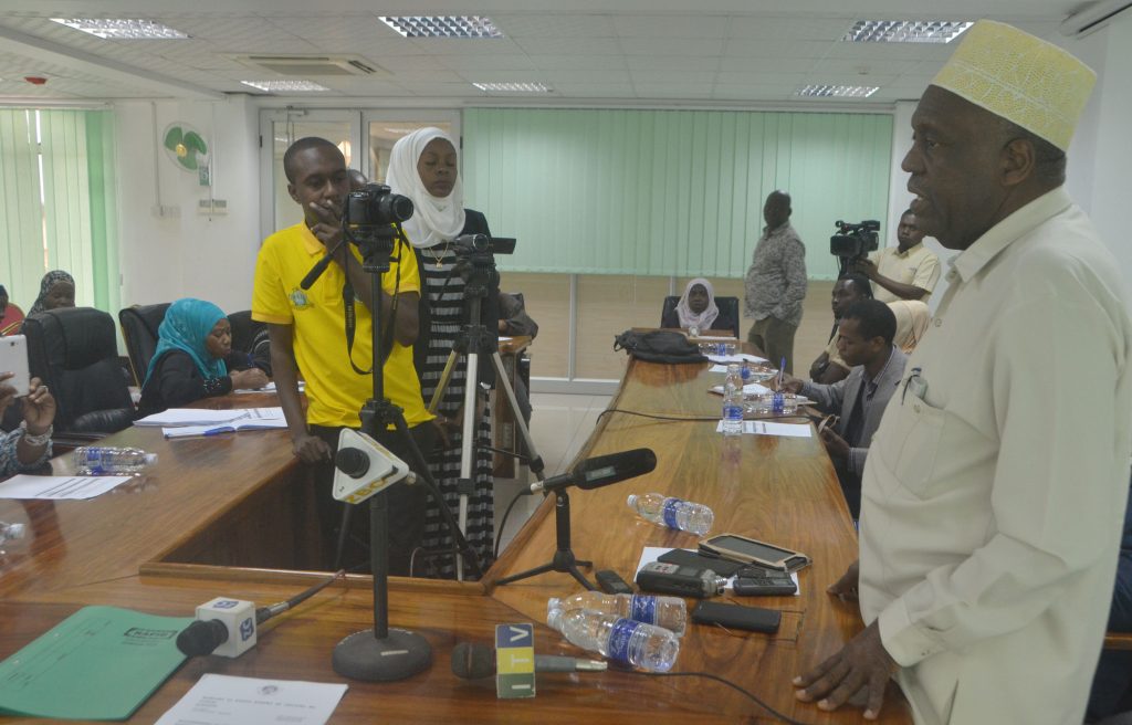 Baadhi ya Waandishi wa Habari waliohudhuria katika Mkutano wa Waandishi wa Habari na Waziri wa Nchi Ofisi ya Rais Utumishi wa Umma na Utawala Bora Haroun Ali Suleiman kuzungumzia siku ya kupambana na Rushwa na Uhujumu uchumi ambayo huadhimishwa kila ifikapo 11/07/2019 mkutano uliofanyika katika ukumbi wa Ofisi hio Mazizini Zanzibar.