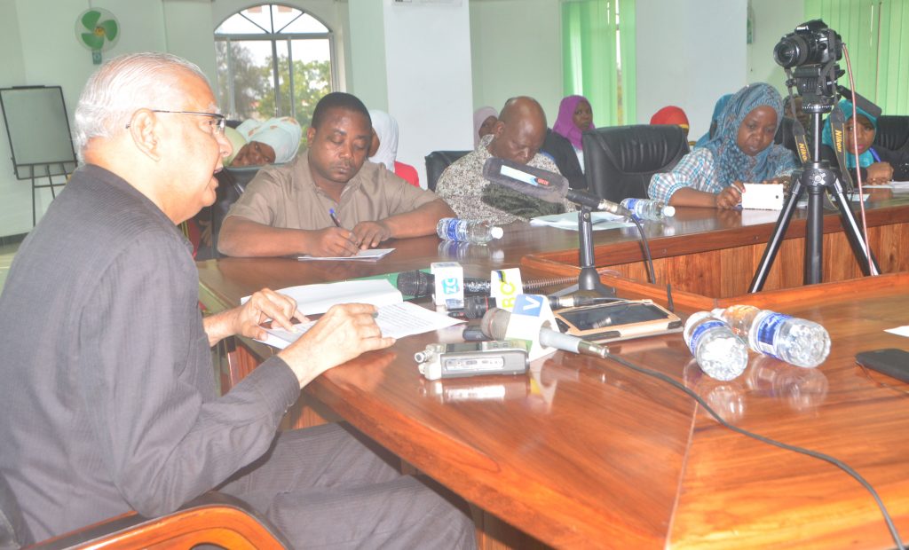 Mkurugenzi Mkuu mamlaka ya kuzuia rushwa na Uhujumu Uchumi Mussa Haji Ali akitolea ufafanuzi juu ya Siku ya kupambana na Rushwa Afrika katika mkutano wa Waandishi wa Habari na Waziri wa Nchi Ofisi ya Rais Utumishi wa Umma na Utawala Bora Haroun Ali Suleiman kuzungumzia siku ya kupambana na Rushwa na Uhujumu uchumi ambayo huadhimishwa kila ifikapo 11/07/2019 mkutano uliofanyika katika ukumbi wa Ofisi hio Mazizini Zanzibar.