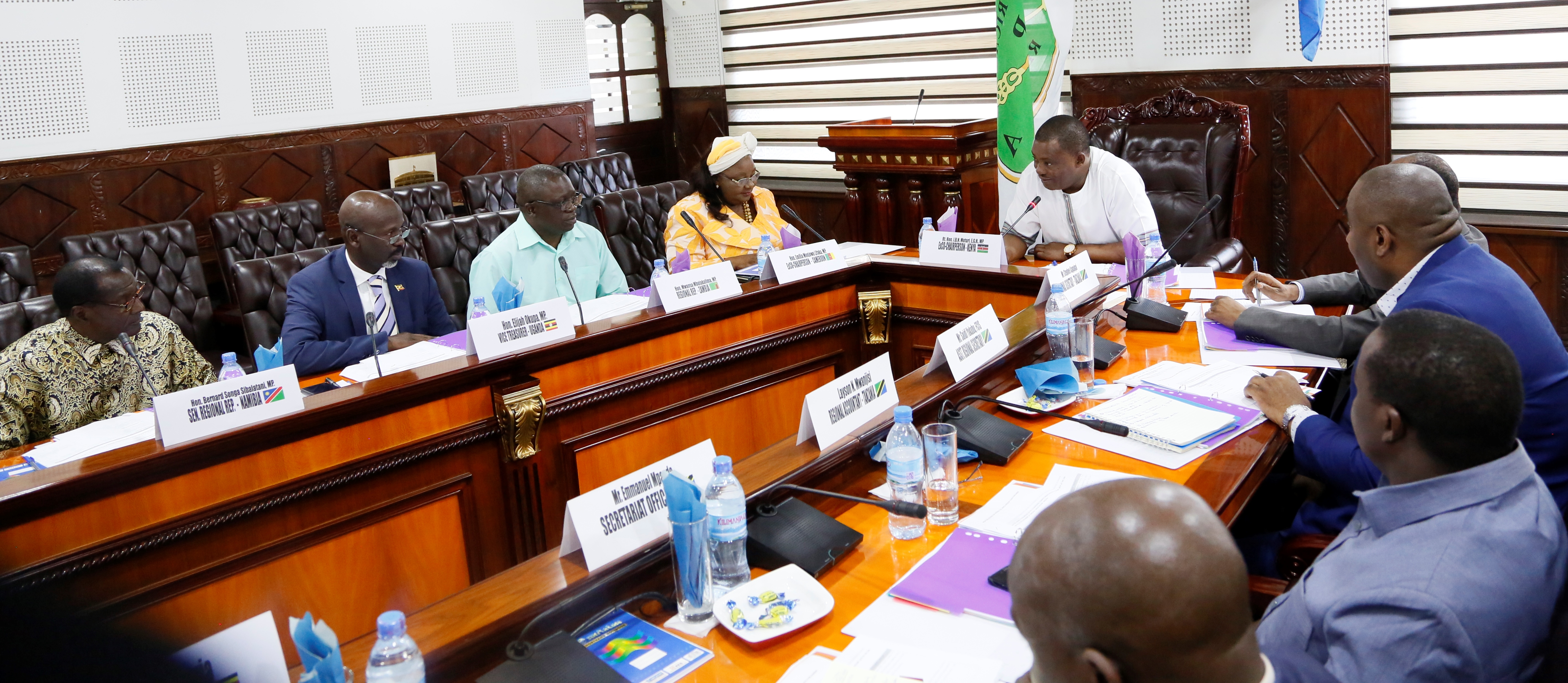 Spika wa Bunge la Kenya ambaye pia ni Mwenyekiti wa Kamati ya Uongozi ya Chama cha Mabunge ya Jumuiya ya Madola Kanda ya Afrika Mhe. Justin Muturi akiongoza kikao cha Kamati hiyo Ofisi Ndogo za Bunge Jijini Dar es Salaam mapema leo.Wakwanza kushoto ni Naibu Spika wa Bunge la Cameroon Mhe. Emilia Lifaka.Pia, wanaofutia upande huo ni Wajumbe wa Kamati hiyo kutoka Bunge la Zambia, Uganda na Namibia.