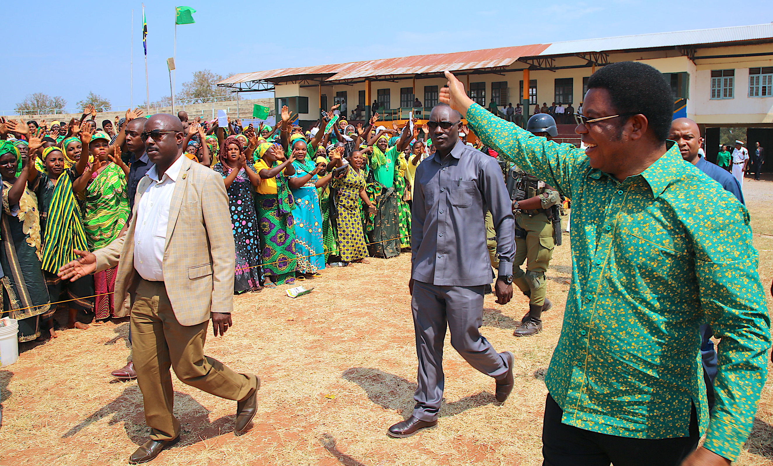 Waziri Mkuu, Kassim Majaliwa akiwapungia wananchi wakati alipowasili kwenye Uwanja wa Lake Tanganyika mjini Kigoma kufungua Kongamano la Wanawake (UWT) kitaifa, Julai 13, 2019. (Picha na Ofisi ya Waziri Mkuu)