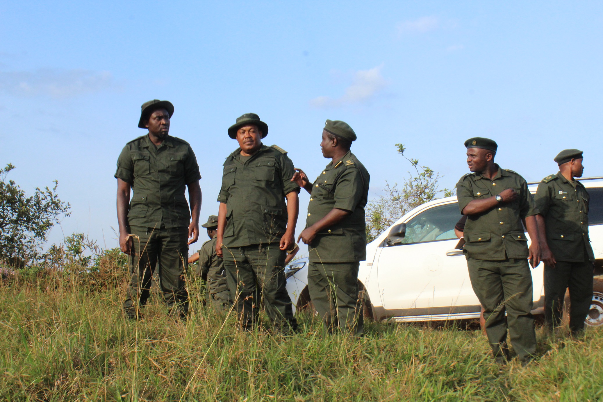 Wahifadhi wakiwa na Waziri wa Maliasili na Utalii ndani ya Hifadhi ya Taifa ya Rumanyika Orugundu wilayani Karagwe wakati wa ziara ya Kikazi ya Waziri wa Maliasili na Utalii Dk. Hamisi Kigwangalla katika hifadhi hiyo.