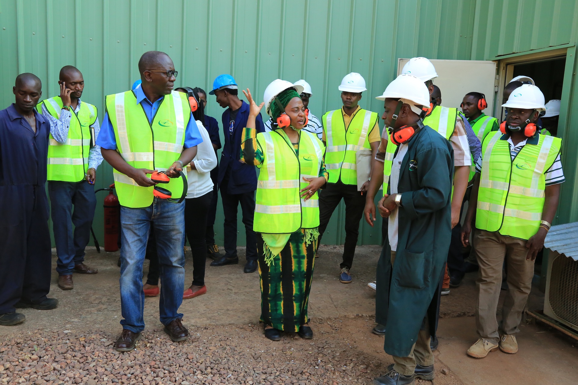 Naibu Waziri wa Nishati, Subira Mgalu,( katikati) akiwapa maelekezo wasimamizi wa mitambo ya kufua umeme katika kituo cha kuzalisha a umeme mkoani Kigoma.