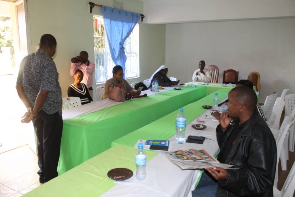 Waandishi wa habari wa Mkoa wa Manyara, wakimsikiliza Mkurugenzi wa CSP, Nemency Iriya akizungumza nao juu ya mikakati ya kupambana na vitendo vya ukatili vya ukeketaji.