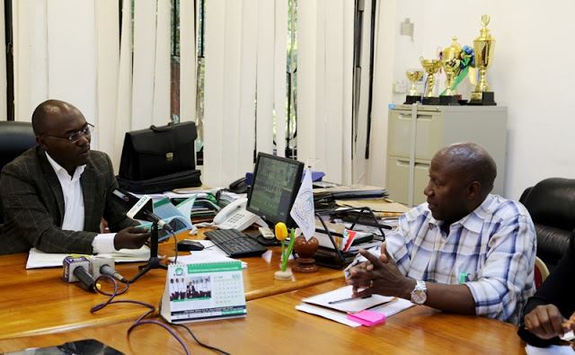Mkurugenzi wa Uendelezaji Miundombinu -Tume ya Taifa ya Umwagiliaji Mhandisi Senzia Maeda akiomba taarifa kutoka kwa Mkurugenzi wa Halmashauri ya Mvomero,Mhe.Florent Kyombo kuhusu Skimu ya Umwagiliaji katika Wilaya ya Mvomero inavyofanya kazi na mafanikio yake mpaka sasa.
