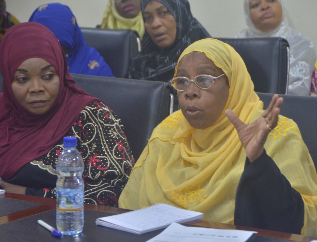 Mjumbe kutoka Kitengo Shirikishi Ukimwi,Homa ya Ini,Kifua kikuu na Ukoma Asha Ahmed Othman akiuliza maswali katika ufunguzi wa mkutano wa Uwasilishaji wa Ripoti ya Utafiti wa Viashiria na Matokeo ya Ukimwi Tanzania wa Mwaka 2016-17 uliofanyika katika Ukumbi wa Ofisi ya Mtakwimu Mkuu Mazizini Zanzibar.