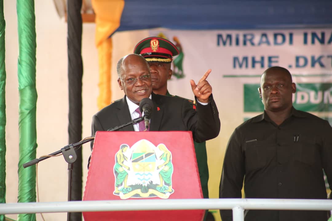 Rais wa Jamhuri ya Muungano wa Tanzania Mhe. Dkt. John Pombe Magufuli akieleza jambo wakati wa uzinduzi rasmi wa miradi 7 yenye jumla ya shilingi Bilion 15 katika Hospitali ya Rufaa ya kanda ya ziwa Bugando.