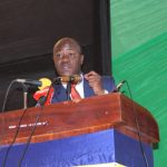 Rais wa Jamhuri ya Muungano wa Tanzania Mheshimiwa Dkt. John Pombe Magufuli akizungumza na wafanyakazi wa Bandari ya Mwanza pamoja na Wabeba mizigo Makuli kuhusu ujenzi wa Meli hizo. PICHA NA IKULU