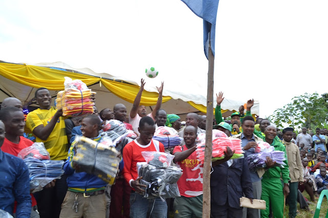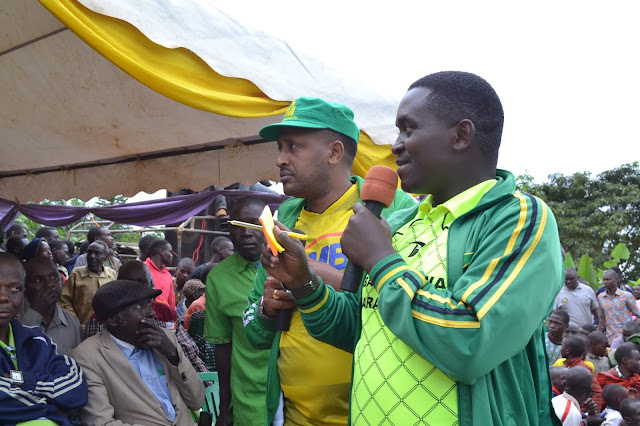 Mratibu wa Mashindano ya BASHUNGWA KARAGWE CUP Bwana Majaliwa Said akitoa Taarifa ya Mashindano kwa Waziri wa Viwanda na Biashara (Mbunge Karagwe) |