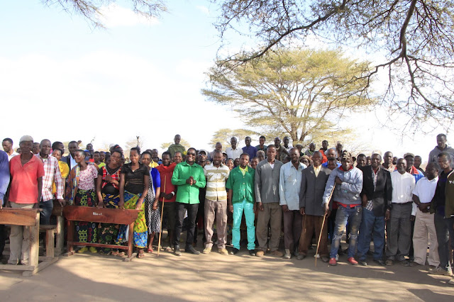 Mbunge wa Jimbo la Singida Magharibi, Eribariki Kingu (mwenye miwani ), akiwa katika picha ya pamoja na Wananchi wa Kijiji cha Nkurusi baada ya kufanya nao mkutano wa hadhaa wilayani Ikungi mkoani Singida jana.