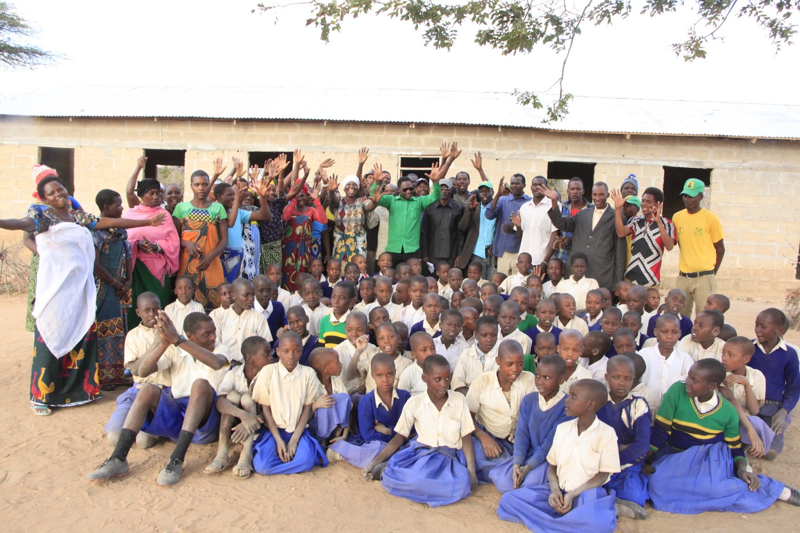 Mbunge wa Jimbo la Singida Magharibi, Eribariki Kingu (mwenye miwani ), akiwa katika picha ya pamoja na Wananchi na Wanafunzi wa Kijiji cha Ishingisha baada ya kufanya nao mkutano wa hadhara wilayani Ikungi mkoani Singida jana.