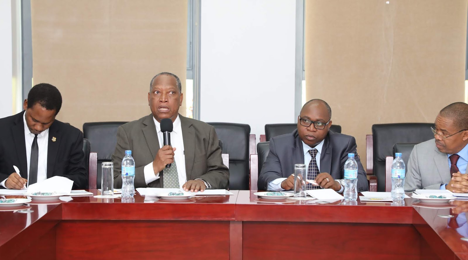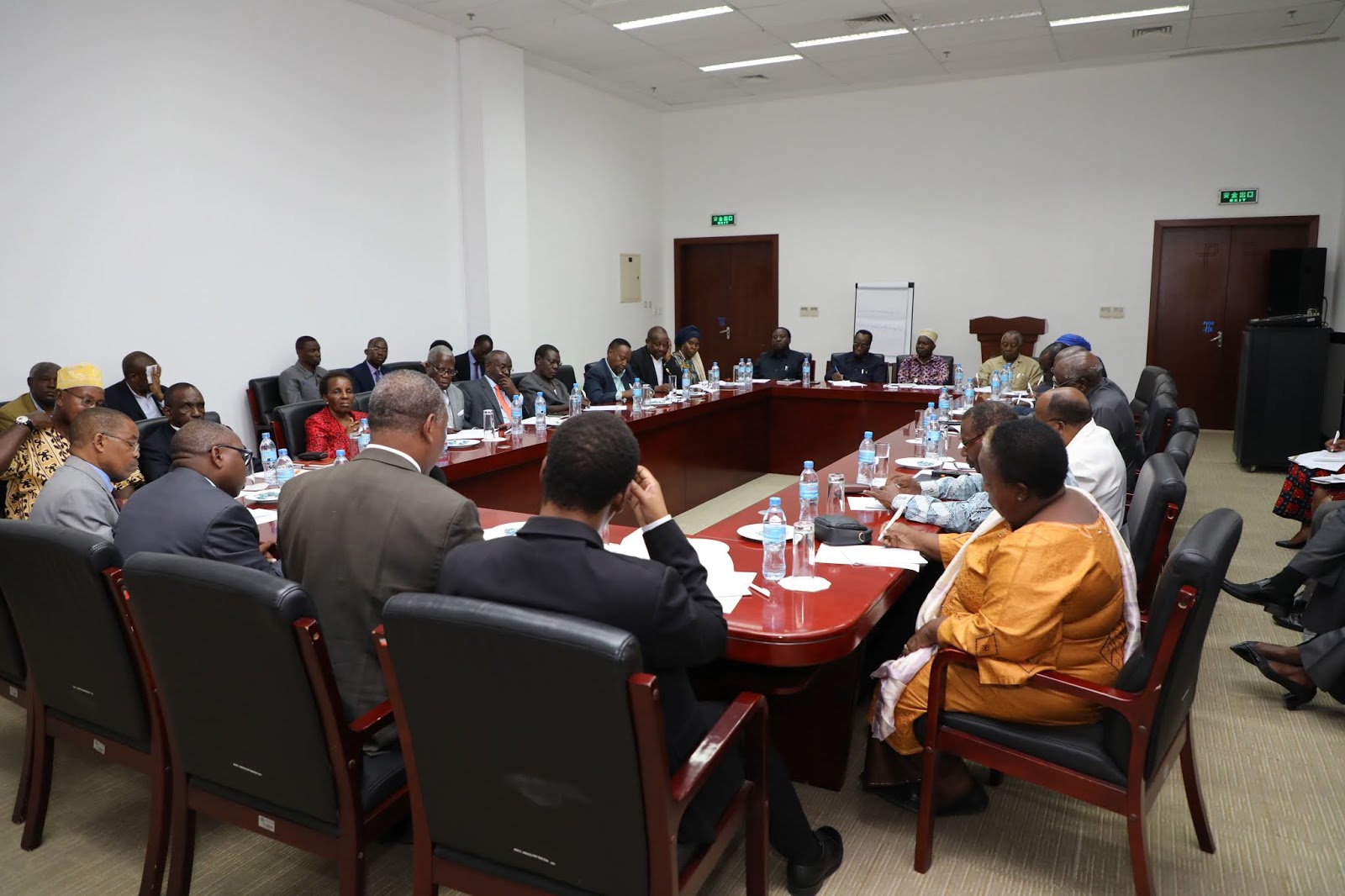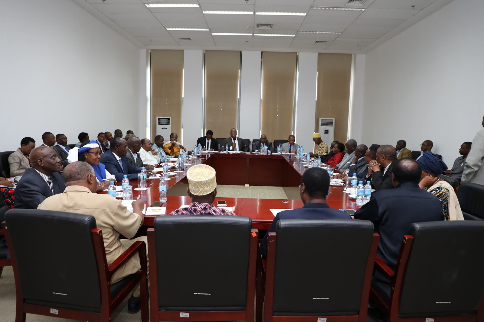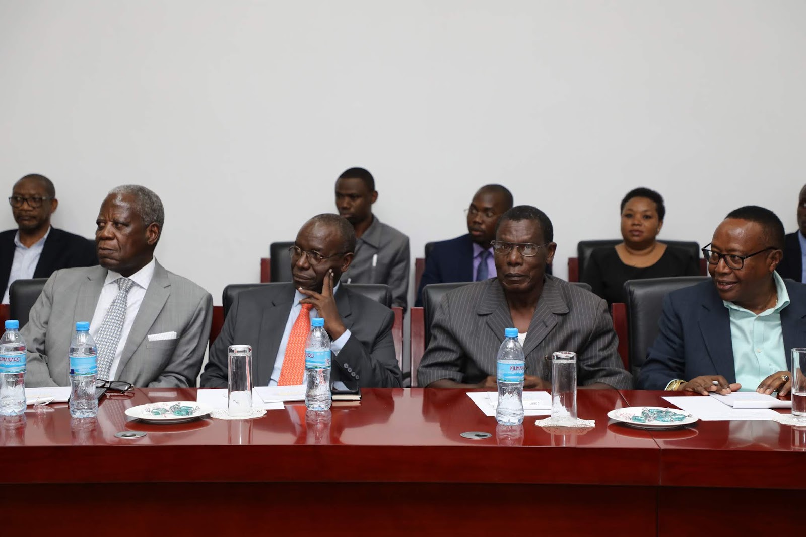 Juu na Chini ni sehemu ya Mabalozi wastaafu walioiwakilisha Tanzania katika nchi mbalimbali duniani wakimsikiliza Mhe. Prof. Palamagamba John Kabudi (hayupo pichani).