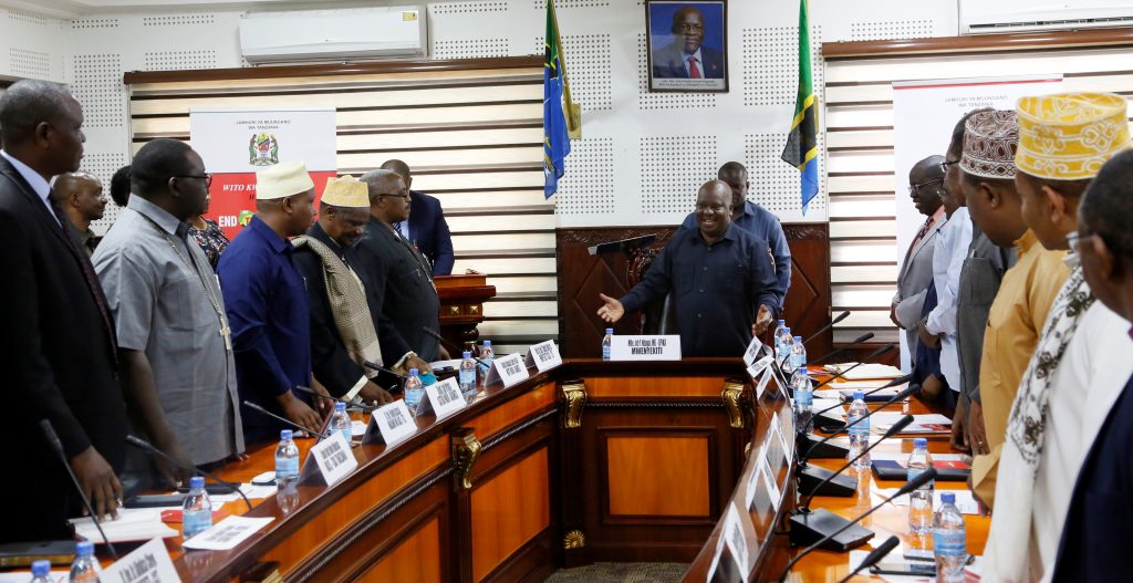 Spika wa Bunge, Mhe. Job Ndugai akiwakaribisha Viongozi wa Dini kwa ajili ya Kongamano la kujadili namna Viongozi hao wanavyoweza kusaidia katika mapambano dhidi ya Ugojwa wa Kifua Kikuu (TB) katika Ofisi Ndogo za Bunge Jijini Dar es Salaam. Kongamano hilo pia lilihudhuriwa na Wajumbe wa Mtandao wa Wabunge wa Kupambana na Ugojwa wa Kifua Kikuu wakiongozwa na Mwenyekiti wa Mtadao huo Mhe. Oscar Mkasa.