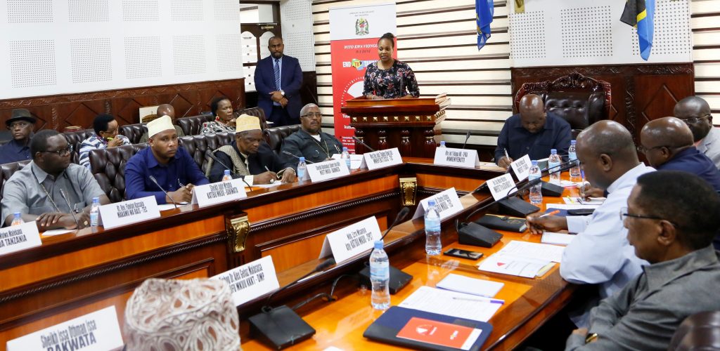 Kaimu Meneja Mpango wa Taifa wa kudhibiti Ugojwa wa Kifua Kikuu na Ukoma, Bw. Dues Kamara akiwasilisha mada wakati wa Kongamano la kujadili namna Viongozi wa Kidini wanavyoweza kusaidia katika mapambano dhidi ya Ugojwa wa Kifua Kikuu (TB) katika Ofisi Ndogo za Bunge Jijini Dar es Salaam.