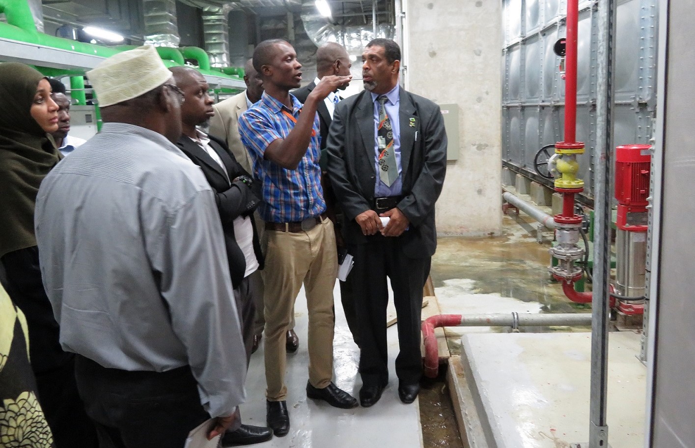 Fungamali (katikati) akielezea kuhusu mfumo wa maji na mfumo wa kuzima moto