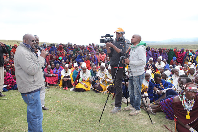 William Ole Nasha Naibu waziri wa Elimu Sayansi na Teknolojia na Mbunge wa Ngorongoro akizungumza na wananchi na Wafugaji katika tarafa ya Ngorongoro.