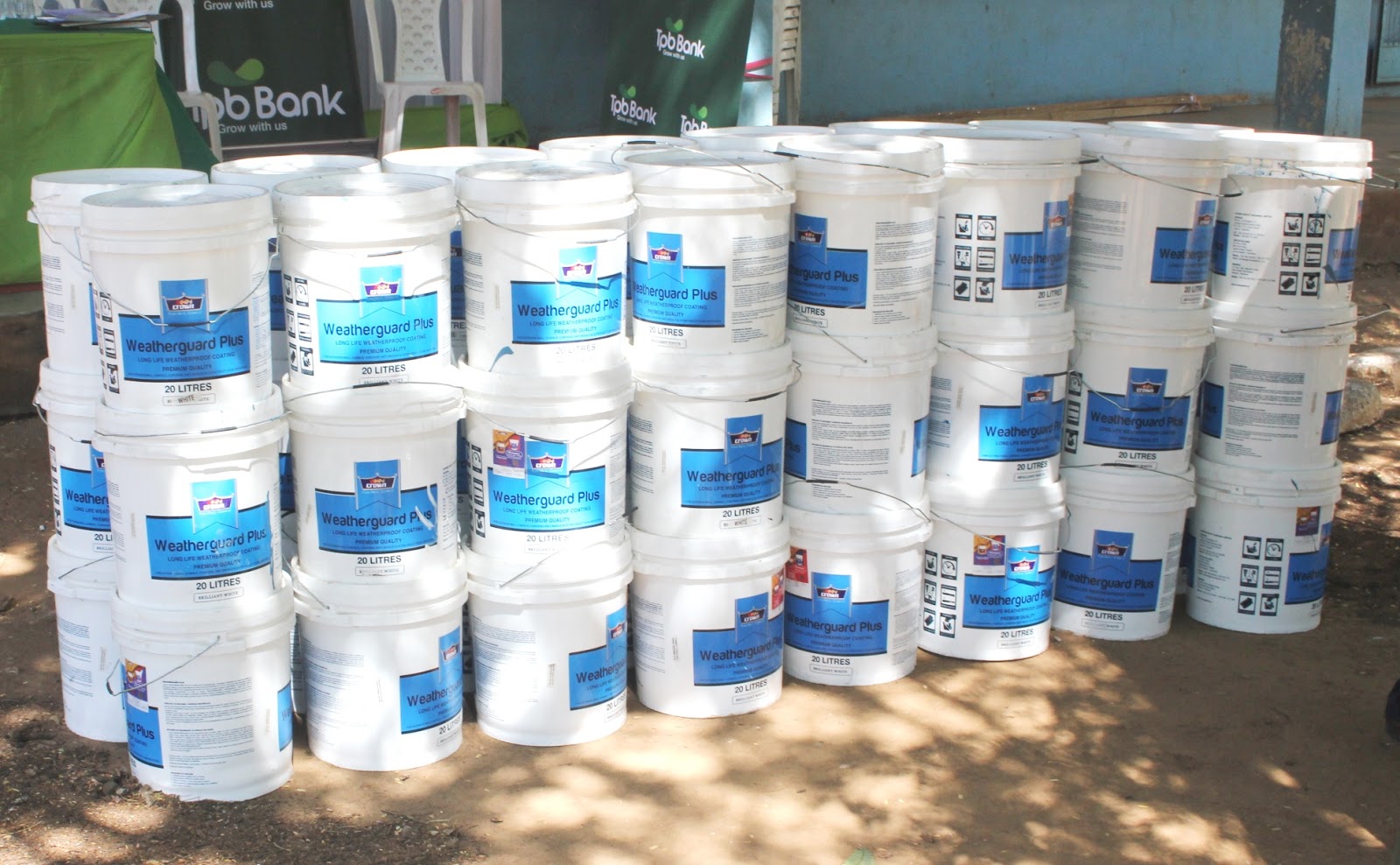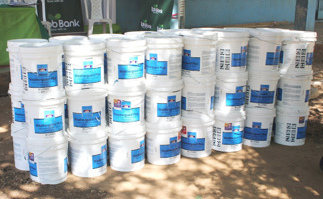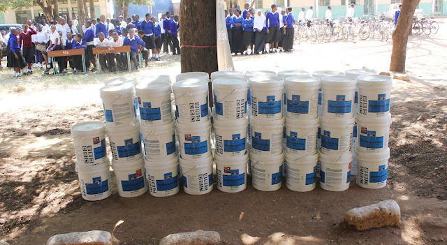 Ndoo za rangi 50 zikiandaliwa kwa ajili ya kukabidhiwa kwenye shule ya Sekondari Buluba.