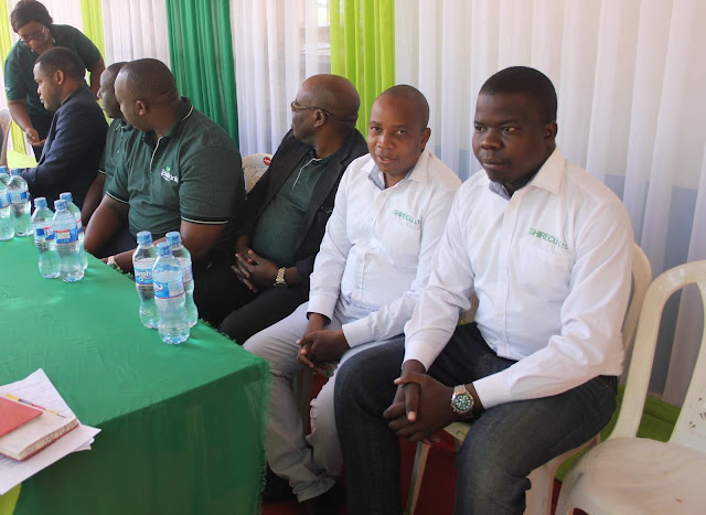 Wafanyakazi wa (SHIRECU) wakiwa kwenye hafla fupi ya kukabidhiwa rangi ndoo 50 kutoka Benki ya TPB.