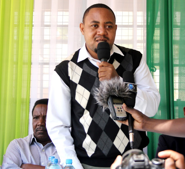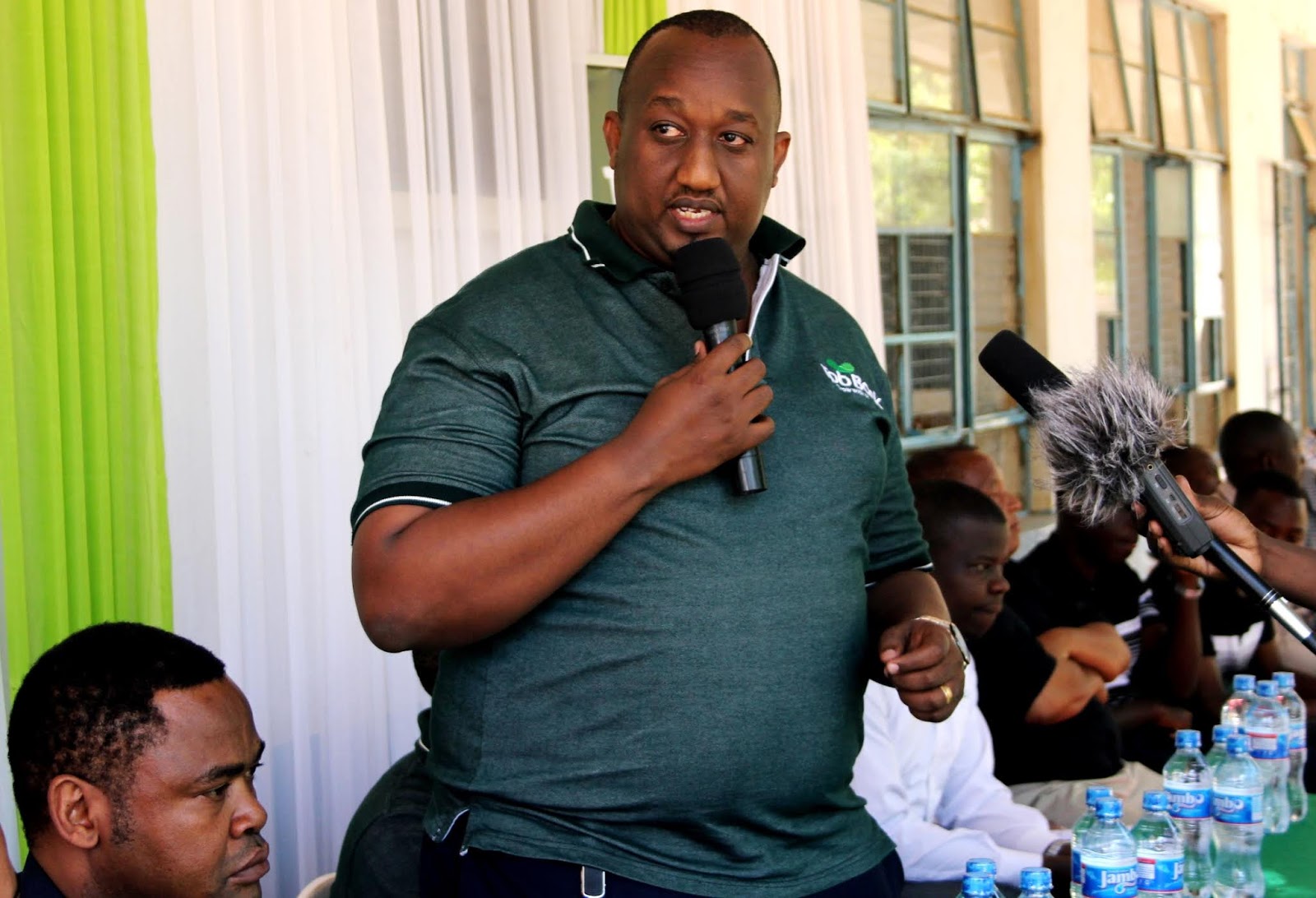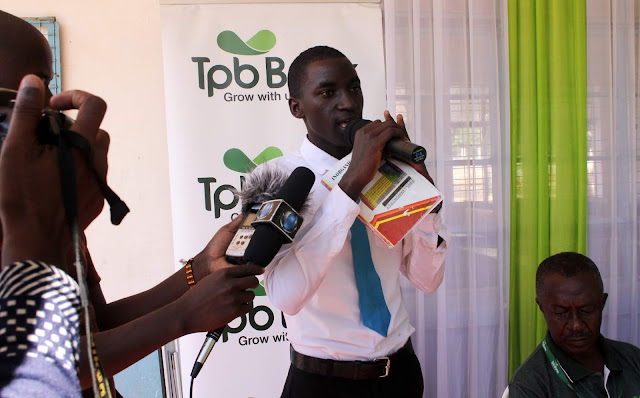 Mkurugenzi wa masoko kutoka benk ya TPB makao makuu Deogratius Kwiyuka, akizungumza jambo wakati wa hafla fupi ya kukabidhi rangi ndoo 50 katika shule ya Ssekondari Buluba.