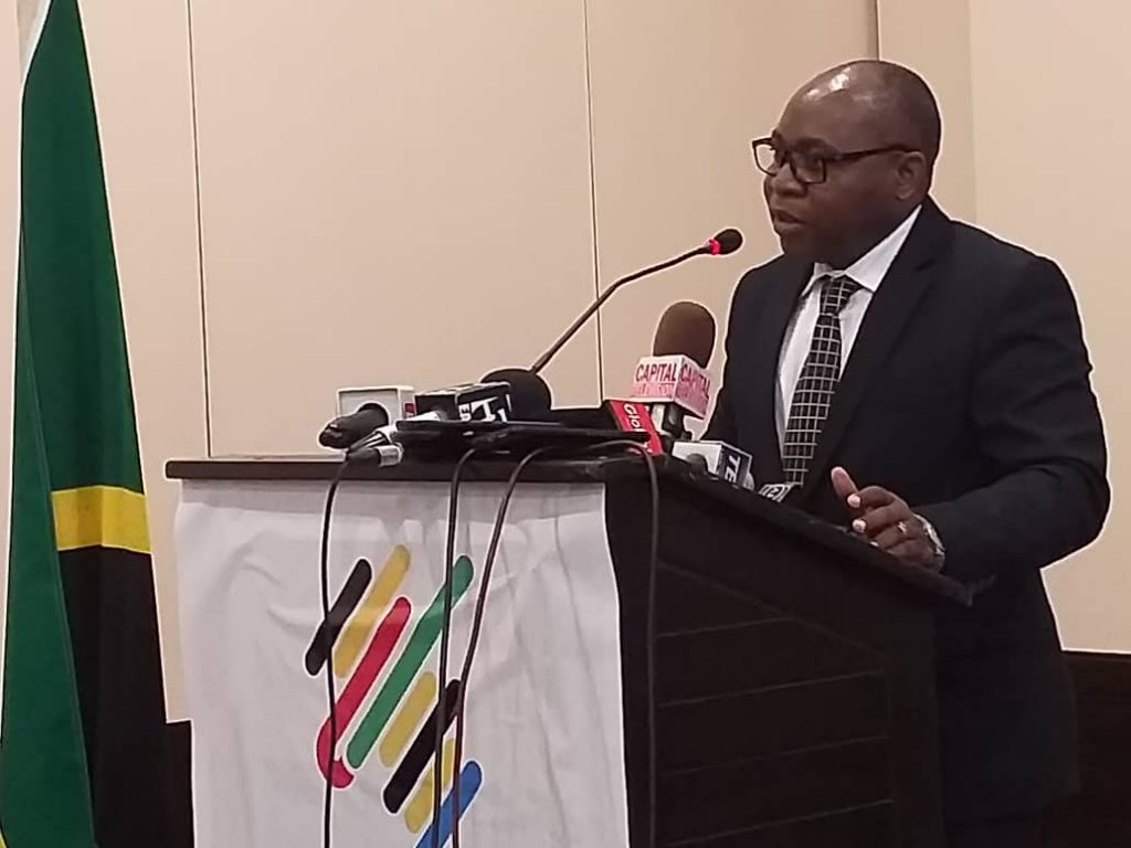 Naibu Waziri wa Mambo ya Nje na Ushirikiano Afrika Mashariki, Mh.Damas Ndumbalo akizungumza na wadau mbalimbali wa sekta binafsi pamoja na wanahabari katika mkutano wa ufunguzi wa Mkutano wa Kwanza wa kibiashara kati ya Tanzania na Uganda utakofanyika Septemba 3 hadi 5 Jijini Dar es Salaam