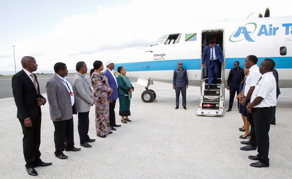 Waziri Mkuu Kassim Majaliwa, akiwasili katika uwanja wa KIA, kwa ziara ya kikazi ya siku nne mkoani Kilimanjaro, Julai 18.2019. (Picha na Ofisi ya Waziri Mkuu).