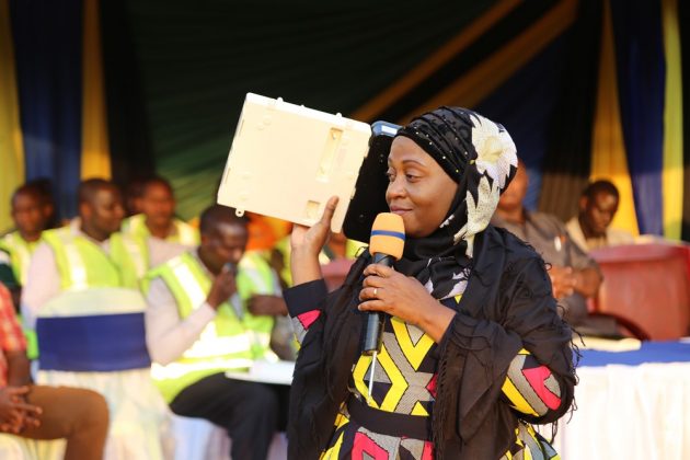 Naibu Waziri wa Nishati, Mhe. Subira Mgalu akionyesha kifaa maalum cha kuunganishia umeme kwenye nyumba ambazo hazijawekewa mfumo wa kusambazia umeme kijulikanacho kama Umeme Tayari (UMETA) wakati wa mkutano wa hadhara katika kijiji cha Nyange wilayani Kibondo mkoa wa Kigoma hivi karibuni. Naibu Waziri Mgalu alikuwa katika ziara yake ya kukagua miradi ya usambazaji wa umeme vijini inayotekelezwa na Serikali kupitia Wakala wa Umeme Vijijini (REA) ambapo jumla ya vijiji 129 vinasambaziwa umeme mkoani humo.Naibu Waziri wa Nishati, Mhe. Subira Mgalu akiwasha umeme kwenye moja ya saluni ya mteja aliyeunganishiwa umeme katika kijiji cha Nyange wilayani Kibondo wakati wa ziara yake ya kukagua maendeleo ya utekelezaji wa mradi wa kusambaza umeme vijiji vya wilaya za Kibondo, Kasulu na Buhigwe mkoani Kigoma hivi karibuni. Naibu Waziri Mgalu alikuwa katika ziara ya siku tatu kukagua miradi ya usambazaji wa umeme vijini inayotekelezwa na Serikali kupitia Wakala wa Umeme Vijijini (REA) ambapo jumla ya vijiji 129 vinasambaziwa umeme mkoani humo. Katikati ni Mkuu wa Wilaya ya Kibondo, Loyce Burra.