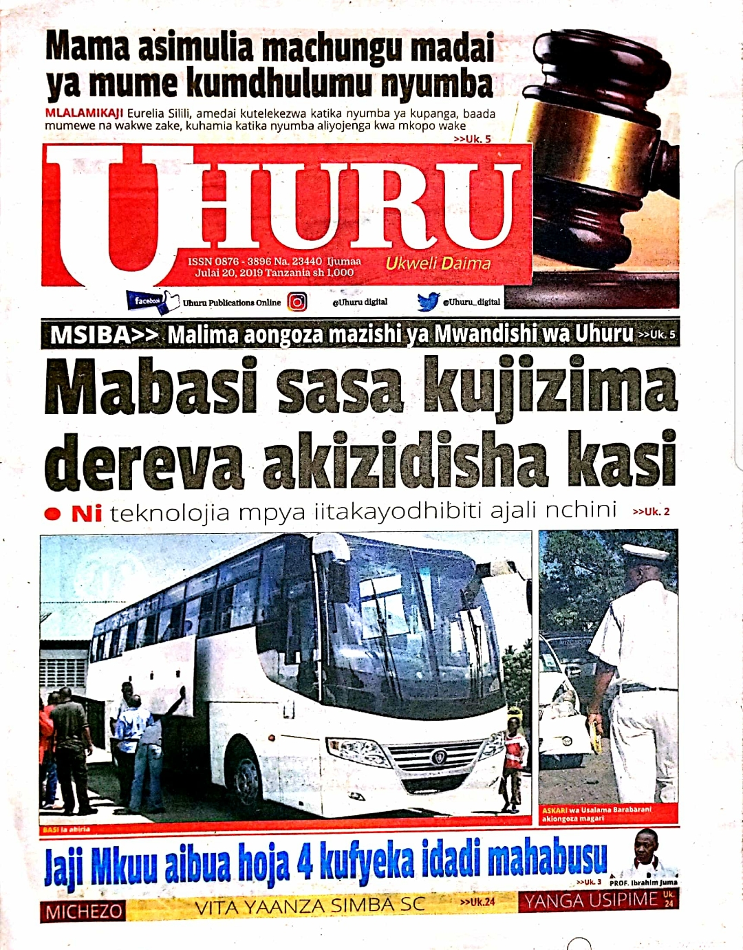 MagazetiPITIA VICHWA VYA HABARI KATIKA MAGAZETI YA LEO JUMAMOSI JULAI 20,2019 Last updated: 2019/07/20 at 3:41 AM Alex Sonna 6 years ago Share SHARE Alex Sonna July 20, 2019 July 20, 2019 Share this Article Facebook Twitter Email Print Previous Article UVCCM BAHI WATAMBA KUWA CCM ITACHUKUA MITAA YOTE UCHAGUZI SERIKALI ZA MITAA MWAKA 2019 Next Article DKT. NDUGULILE ANENA MAKUBWA KATA YA KISARAWE II