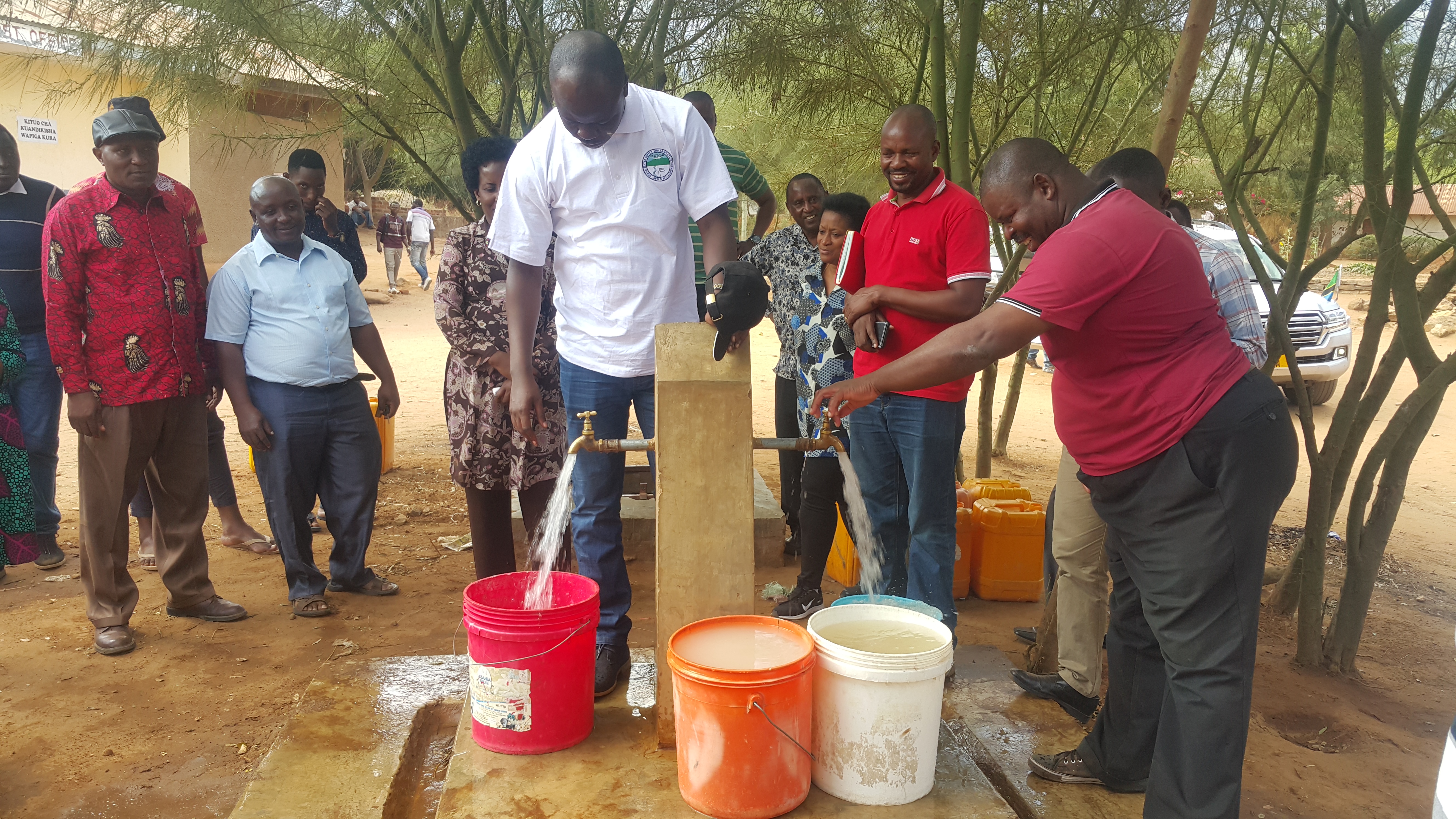 Naibu Waziri wa Maji, Mhe. Jumaa Aweso akikagua moja ya kituo cha kuchotea maji cha Mradi wa Maji Hedaru katika mji wa Hedaru, Wilaya ya Same, mkoani Kilimanjaro.